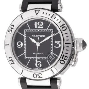 The Cartier Pasha de Cartier WHPA0007 is a bold reinterpretation of a design icon, combining modern elegance with fine watchmaking artistry. Crafted in polished stainless steel, the 41mm case frames a stunning skeleton dial where the bridges of the movement cleverly form the signature Arabic numerals. This architectural design not only showcases Cartiers distinctive aesthetic but also highlights the beauty of its manual-winding Caliber 9624 MC. The screw-down crown cover, set with a blue sapphire cabochon, adds a touch of classic Cartier flair, while the quick-release strap system offers versatility and comfort. A perfect blend of innovation and tradition, the Pasha Skeleton is a statement piece for those who appreciate mechanical beauty and contemporary luxury.